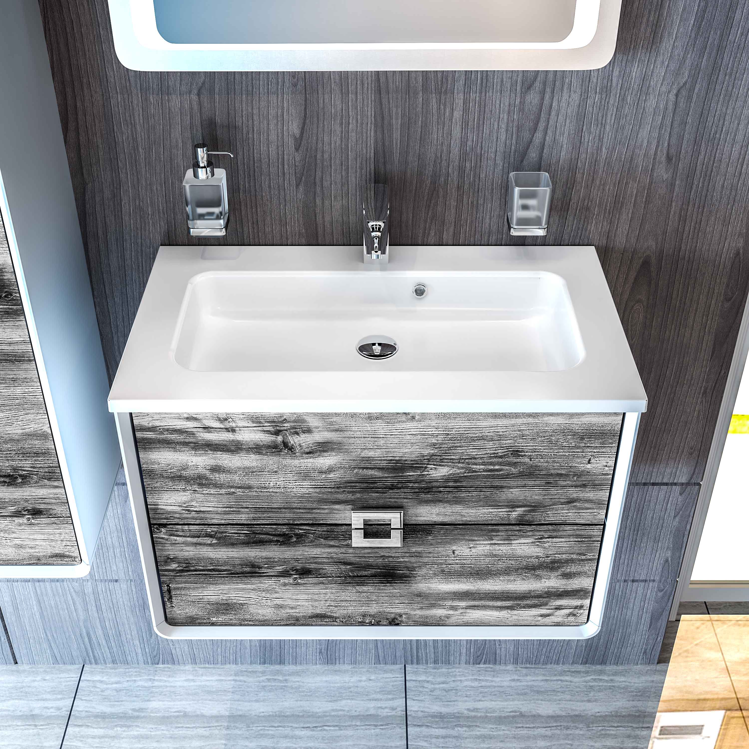 Mobilier de baie suspendat Aurika, Oak
