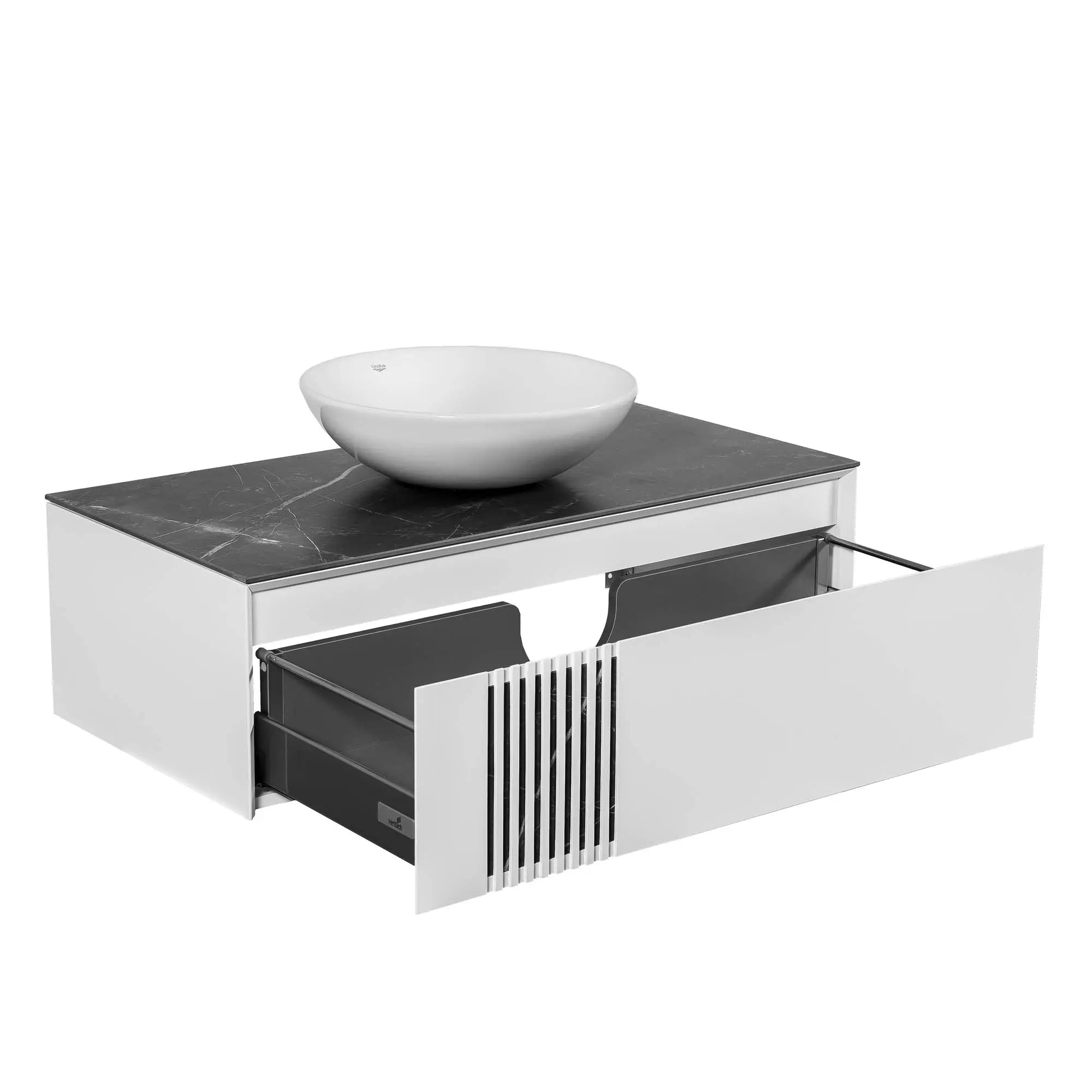 Feroneria Blum, cunoscută pentru durabilitatea și performanța sa excepțională, asigură funcționarea impecabilă a sertarelor cu deschideri precise și închideri silențioase.