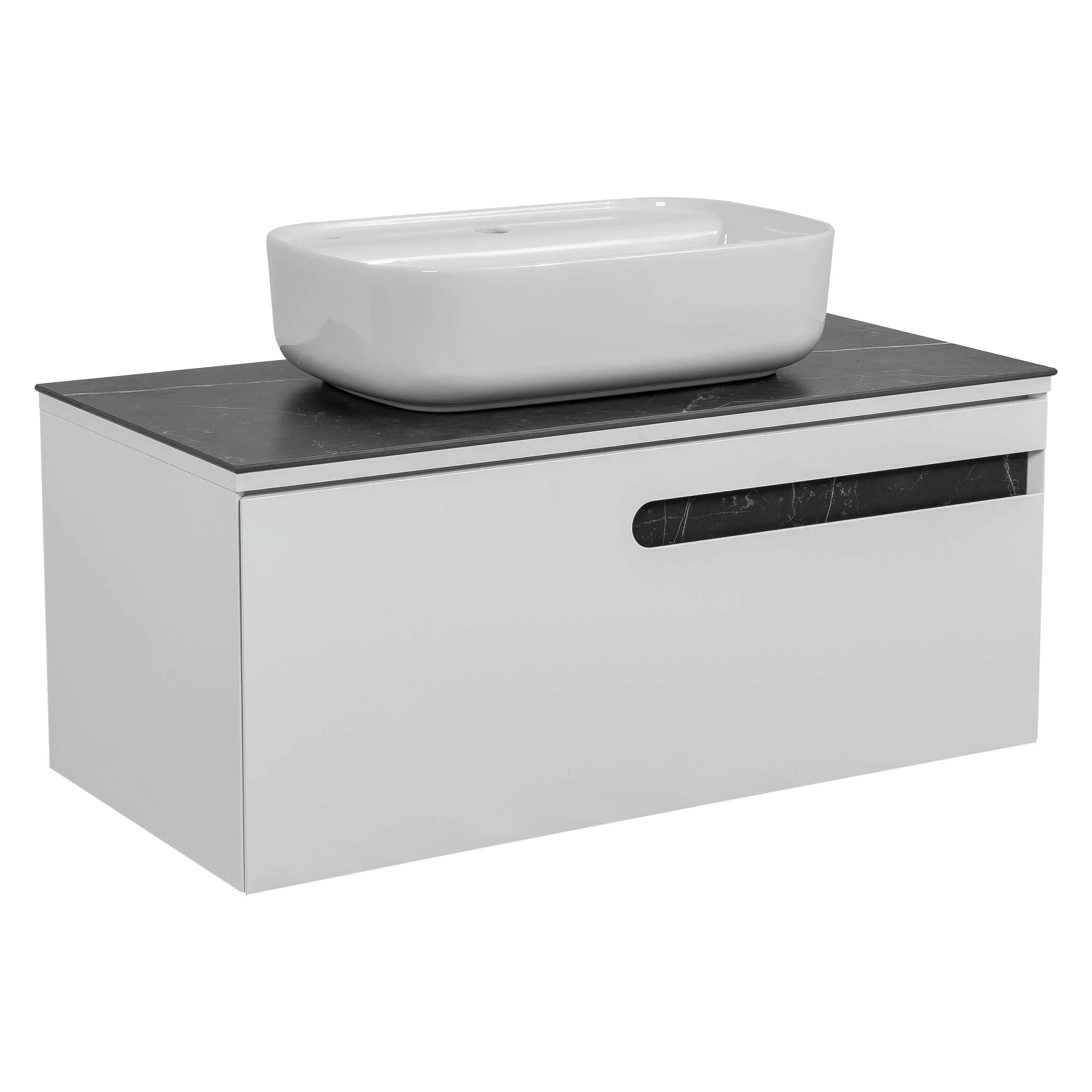 Cu un blat din gresie portelanată, mobilierul Ostin adaugă nu doar un element estetic remarcabil, ci și durabilitate și ușurință în întreținere. Designul modern este accentuat de linii curate și contururi elegante, creând un spațiu de baie care emană eleganță și simplitate.