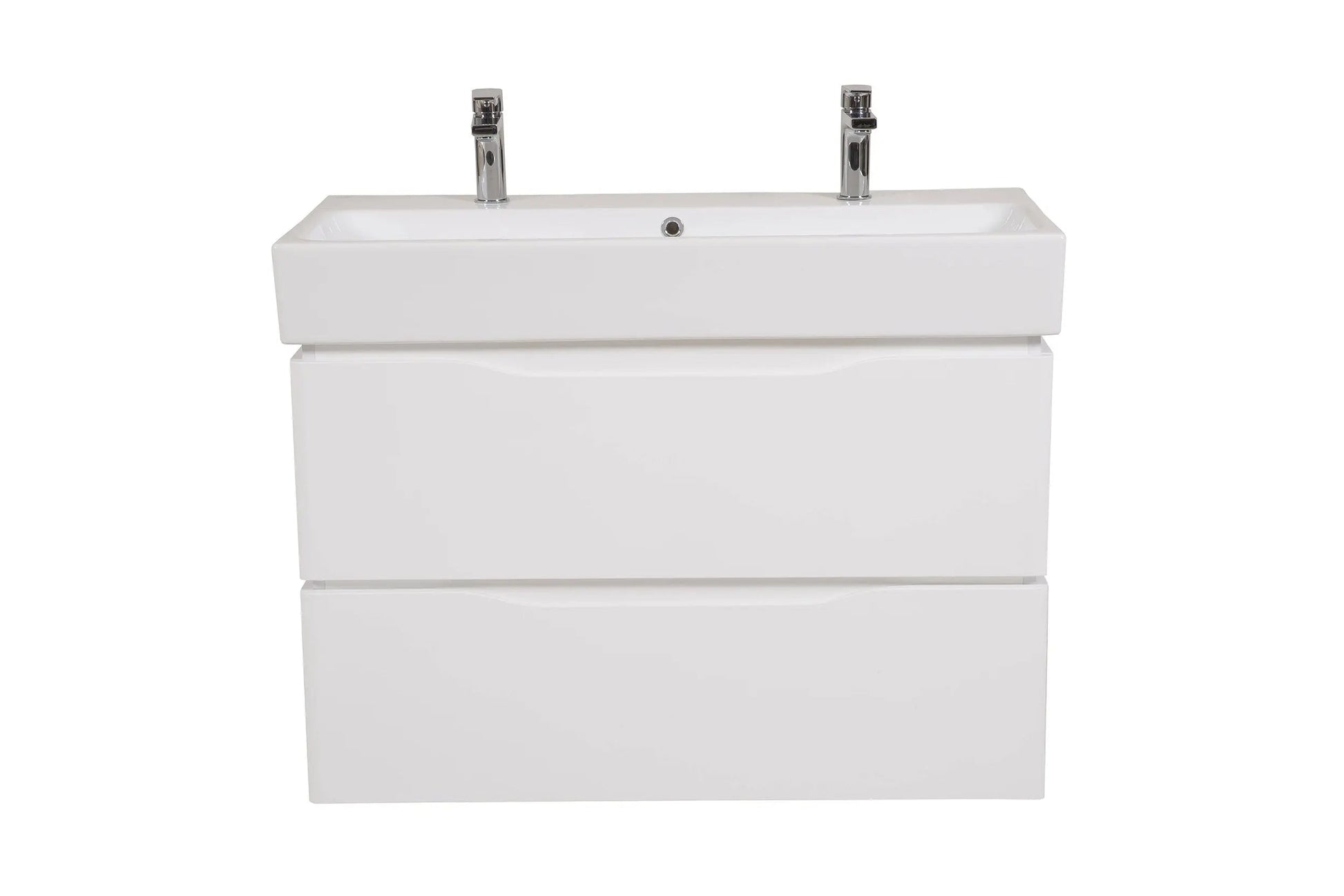 Mobilier de baie suspendat Venice, Alb pentru 2 baterii