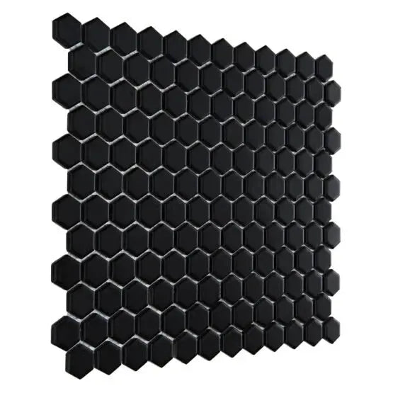 Mozaic Mini Hexagon Black 30×26 Colectia Hexagon creeaza modele geometrice interesante, culorile monocromate fiind accentuate de modelele tridimensionale de mozaic....