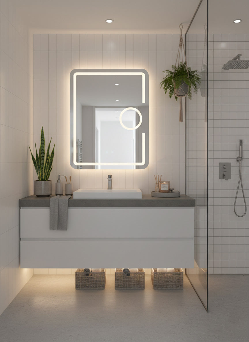 Oglindă baie LED H-1041 cu lupă cosmetică și funcții smart Completează-ți baia cu o oglindă LED modernă și funcțională. Modelul...