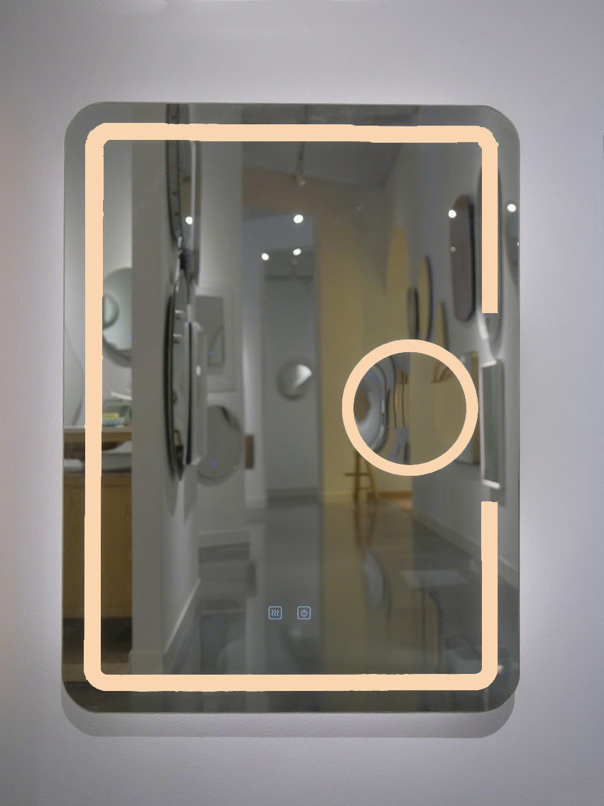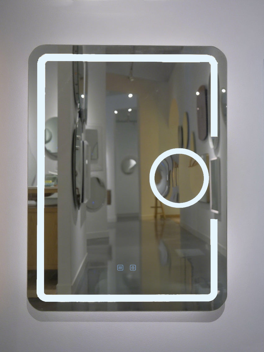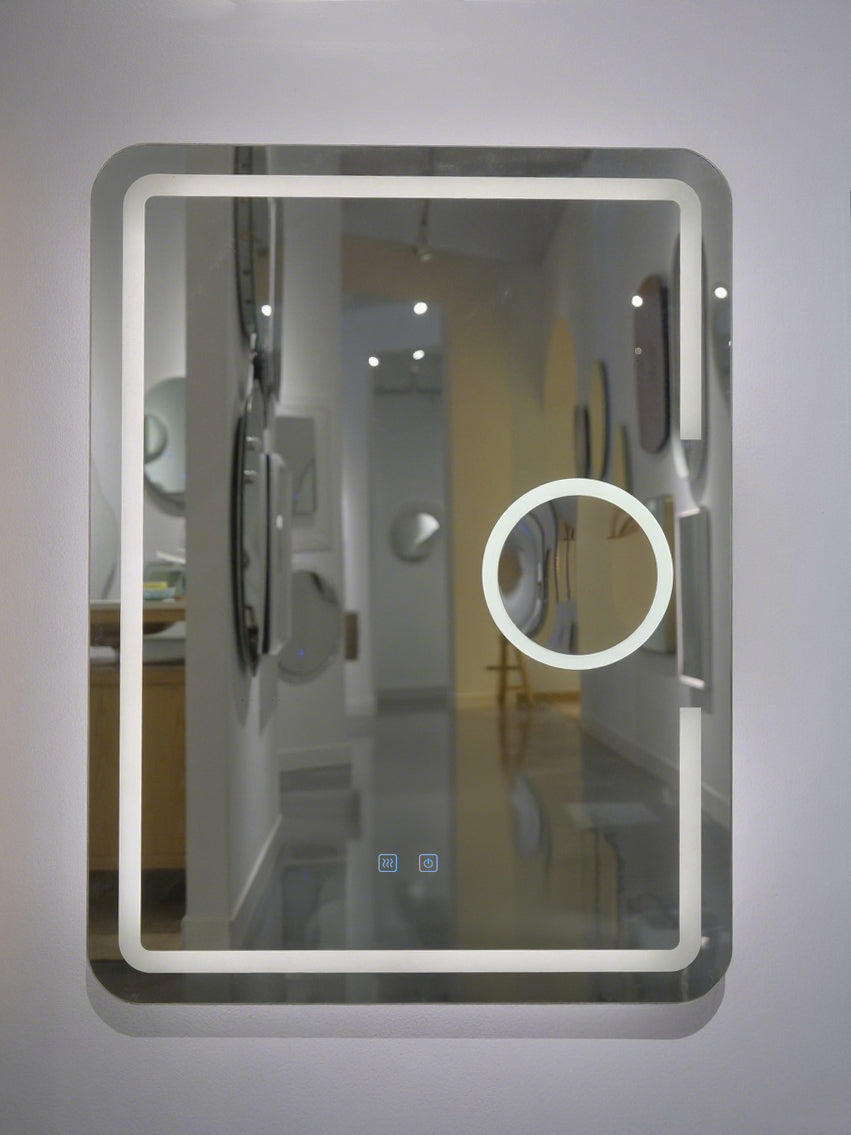 Oglindă baie LED H-1041 dreptunghiulară cu lupă cosmetică, 3 funcții lumină și anti-aburire