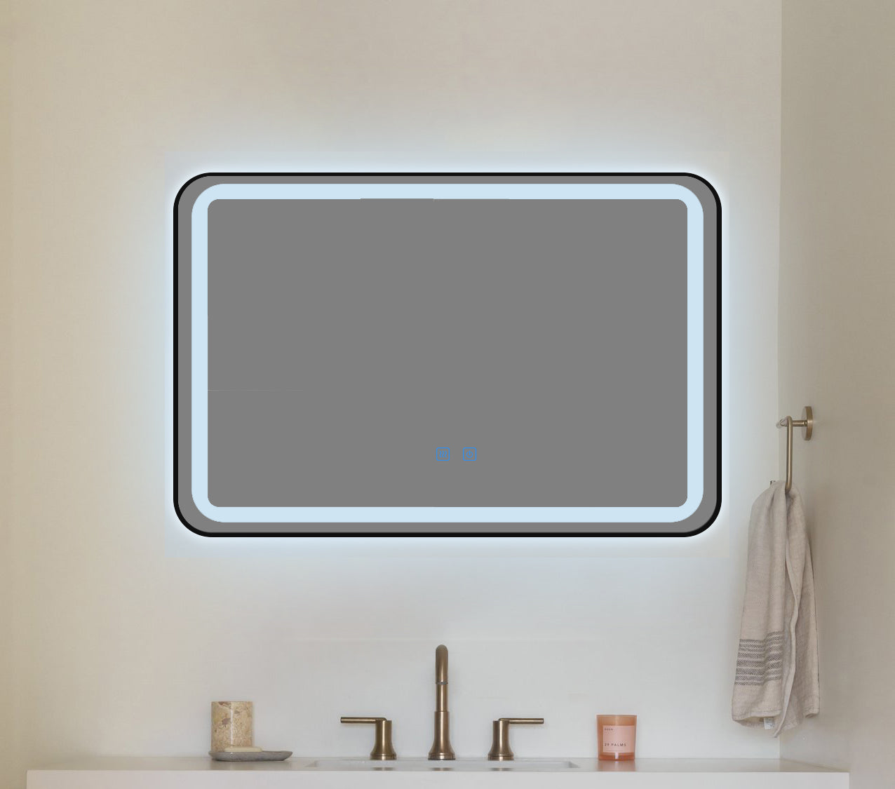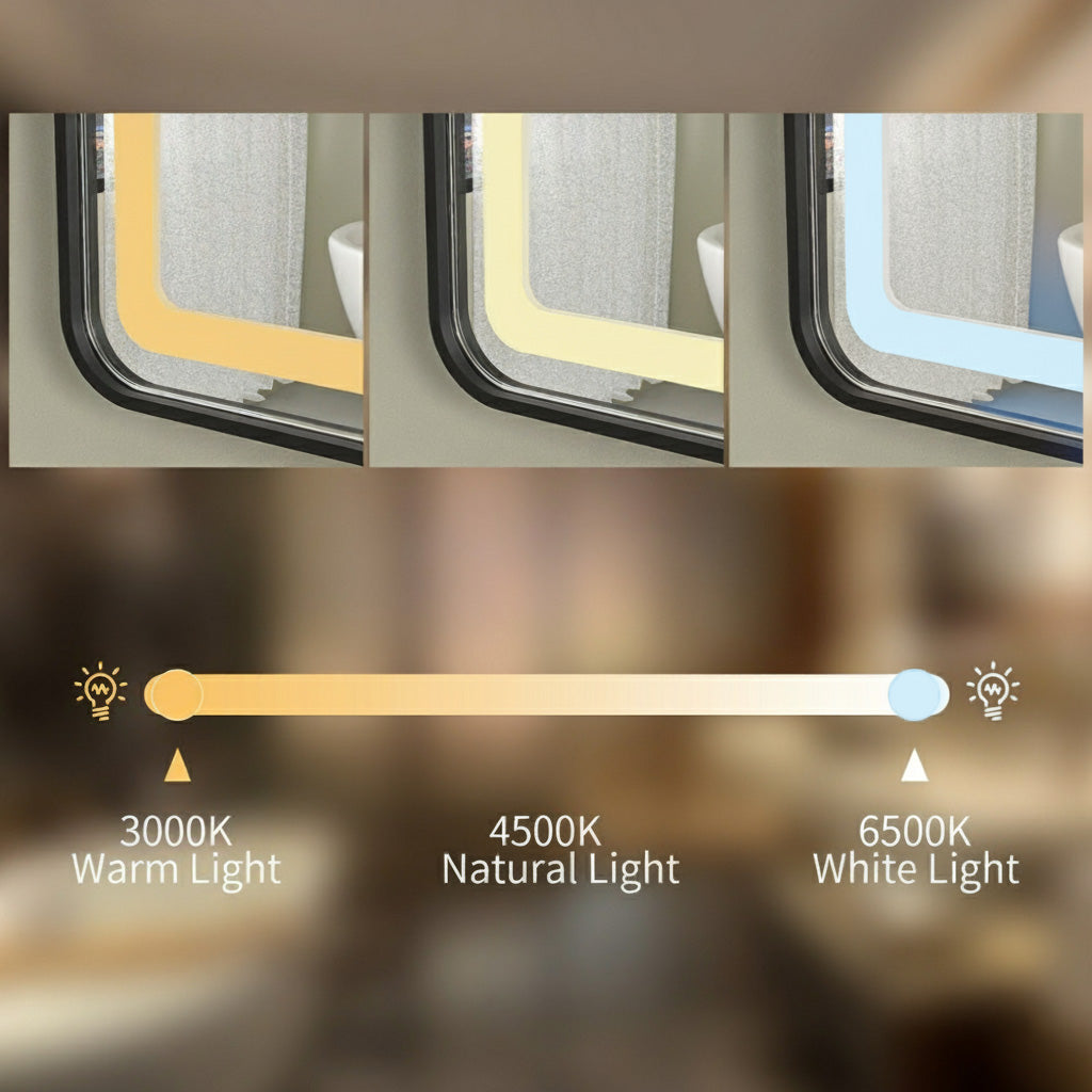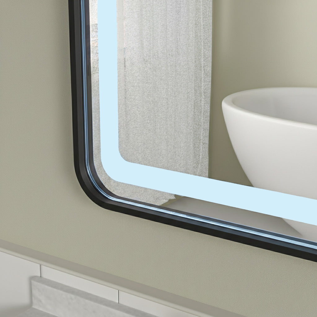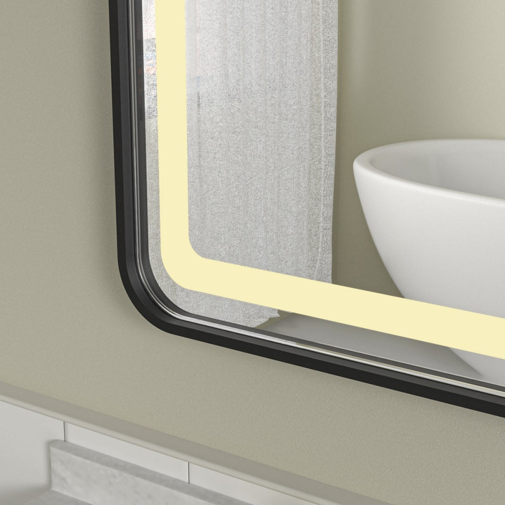 Oglindă baie LED H11 cu ramă neagră, 3 lumini, anti-aburire și touch control