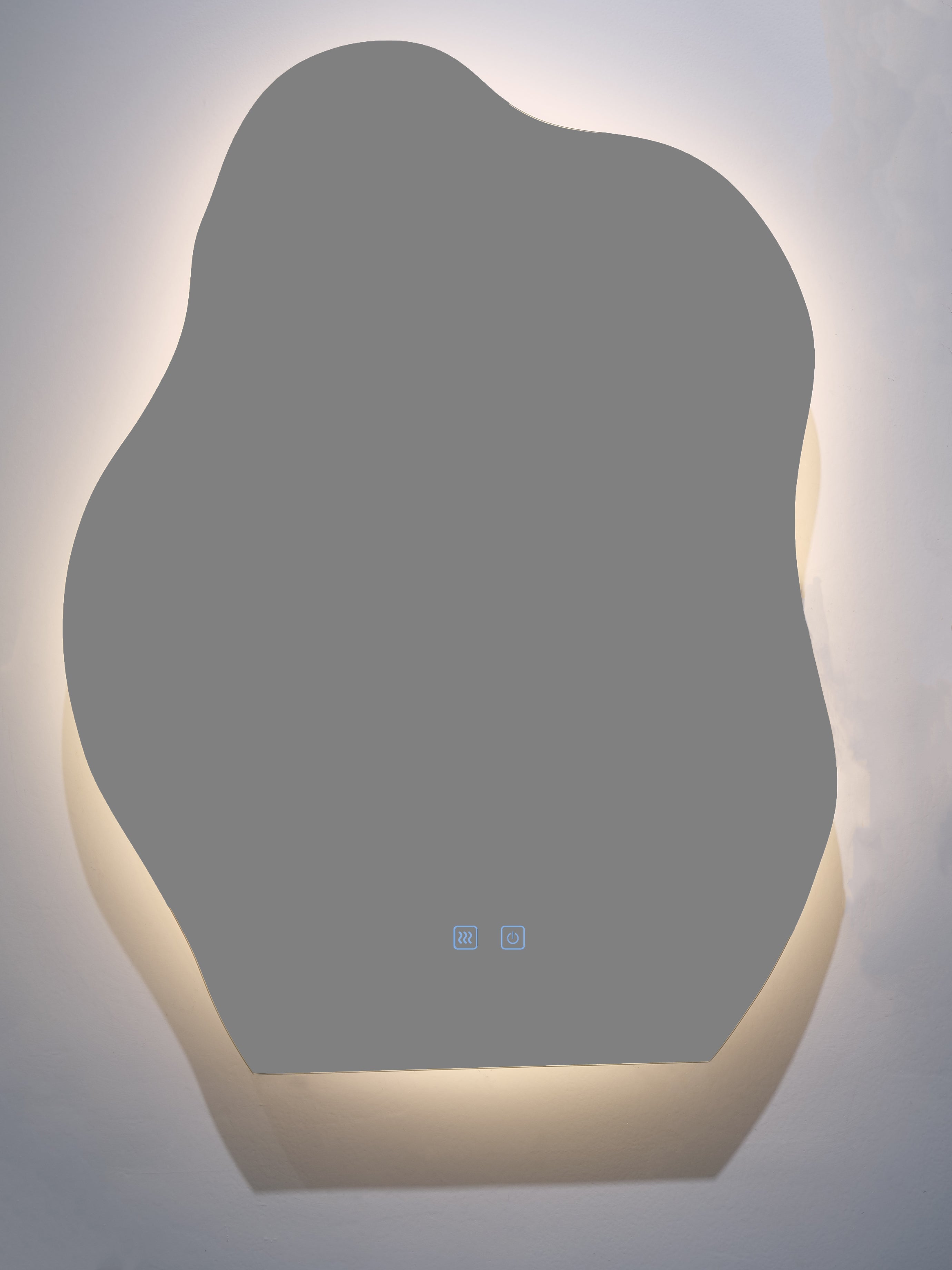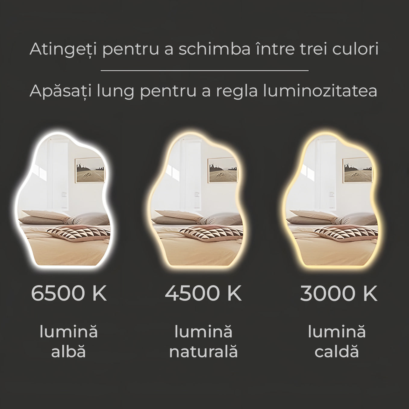 Oglindă baie LED H-3022 – formă neregulată, 3 lumini și anti-aburire