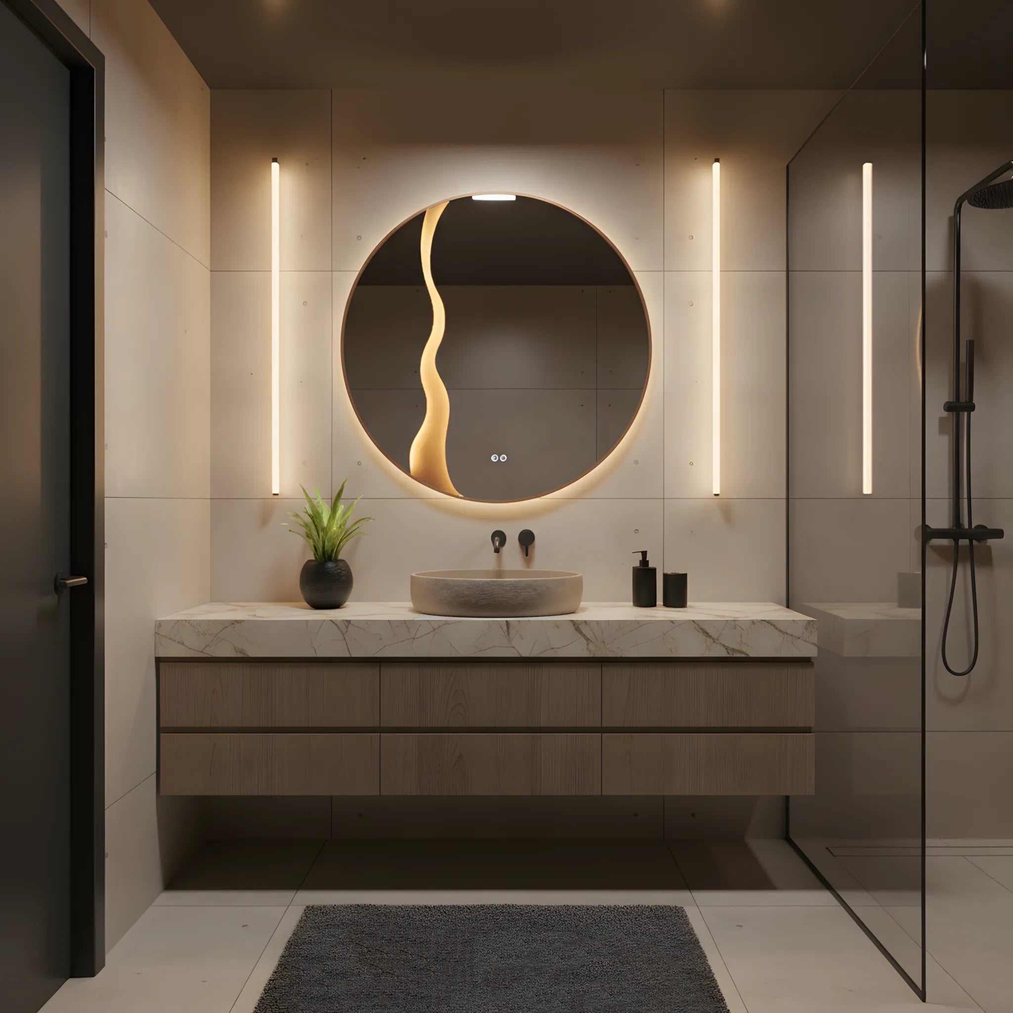 Oglindă LED Rotundă H-2080 cu 3 Nuante de Lumină și Funcție Anti-Aburire