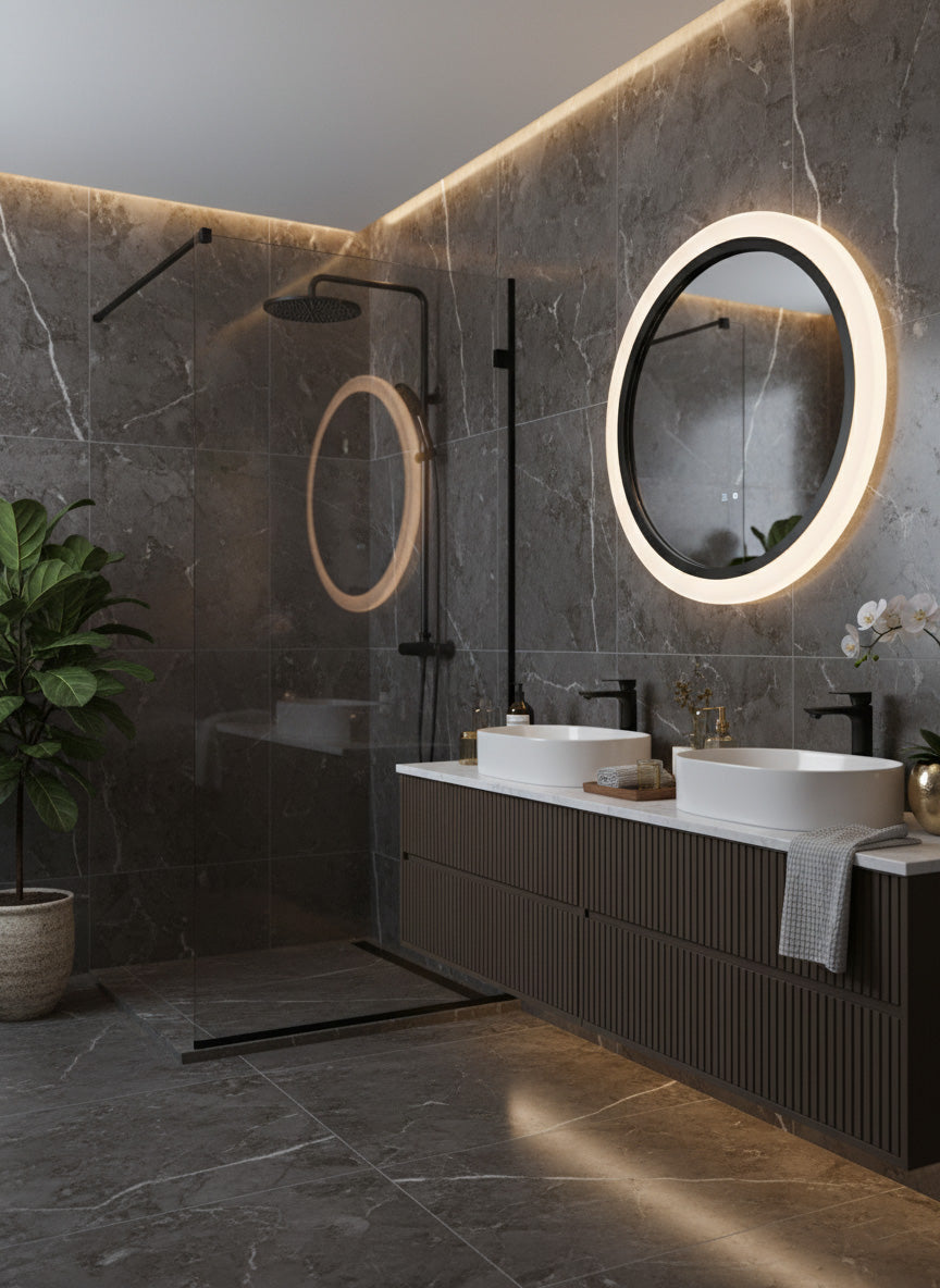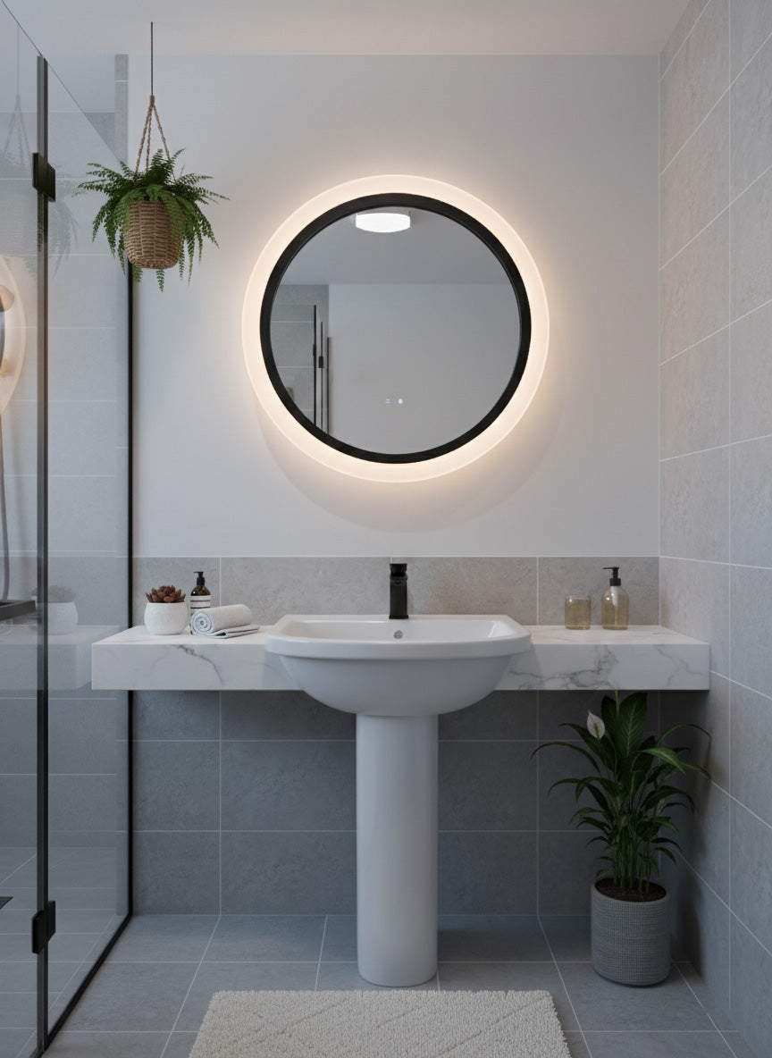 Oglindă LED rotundă H-2022 – Design modern, funcționalitate premium Adaugă un plus de stil și tehnologie băii tale cu oglinda...