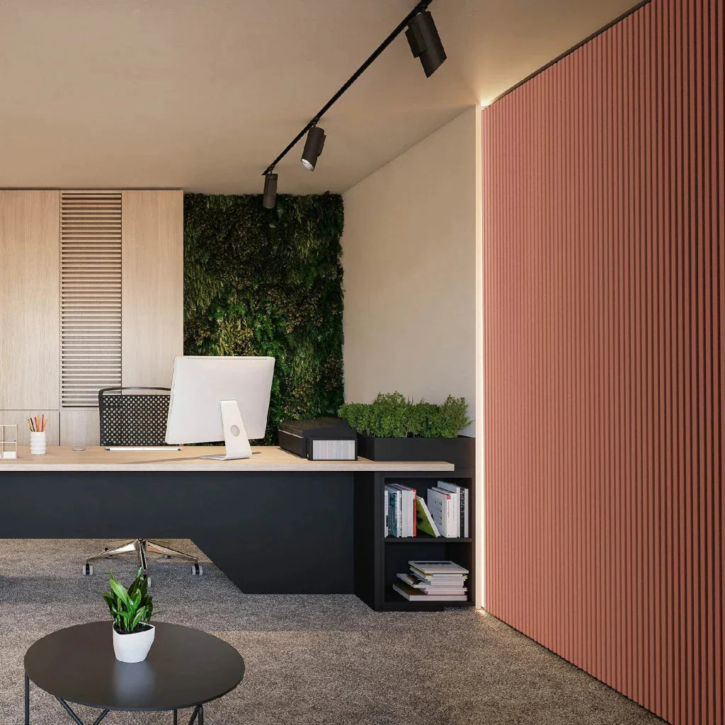 Riflajele Acoustic sunt o propunere perfectă pentru iubitorii soluțiilor de design interior moderne și atemporale. Forma simplă a lamelelor favorizează chiar și cele mai minimaliste amenajări, conferindu-le un caracter unic și subliniindu-le originalitatea. Acestea pot fi o alternativă interesantă la alte elemente decorative, cum ar fi tapetul sau tablourile. În plus, forma simetrică, longitudinală a lamelelor nu va perturba estetica echilibrată a interiorului.