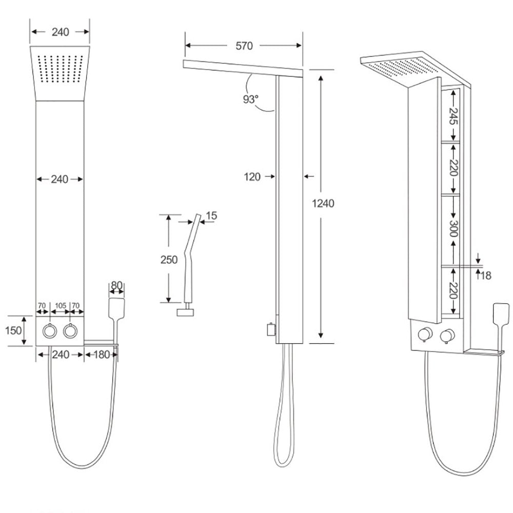 Prevăzut cu duș de mână flexibil și comenzi ergonomice (diverter + mixer), panoul asigură confort și adaptabilitate pentru întreaga familie.