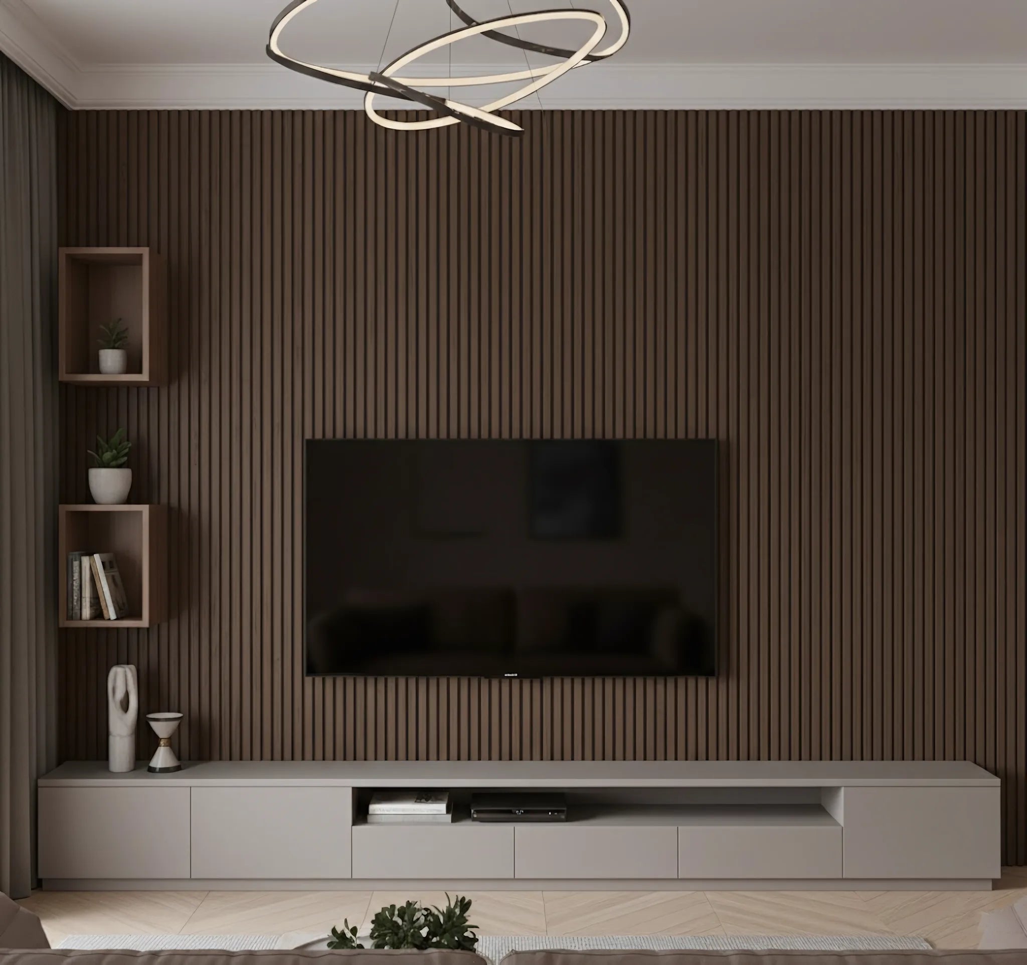 Design simetric cu lamele paralele, finisaj nuc închis Panoul decorativ Parallel Line este o expresie a rafinamentului contemporan, definit de...