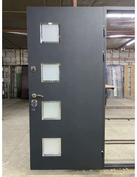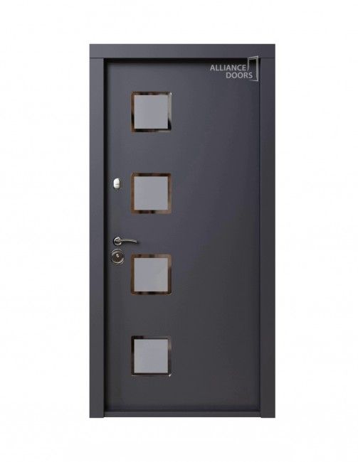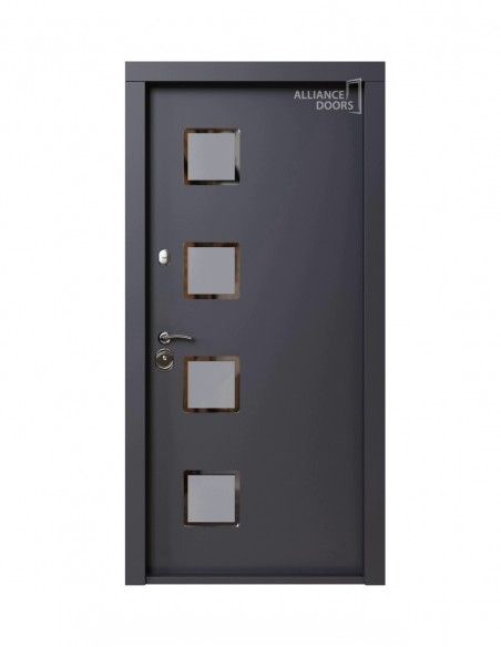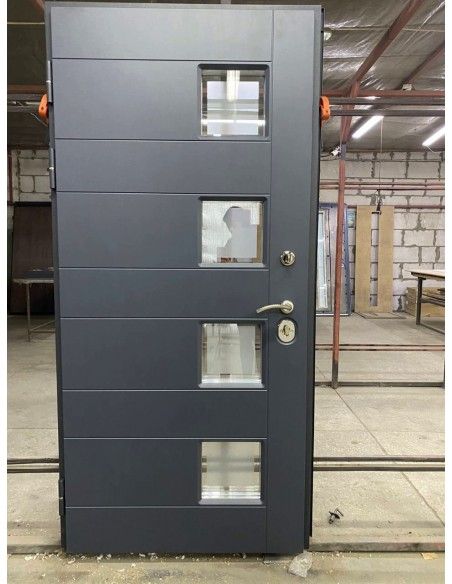 Ușă de intrare casă, din tablă zincată - culoarea antracit. Ușa este echipată cu feronerie Securemme (Italia).