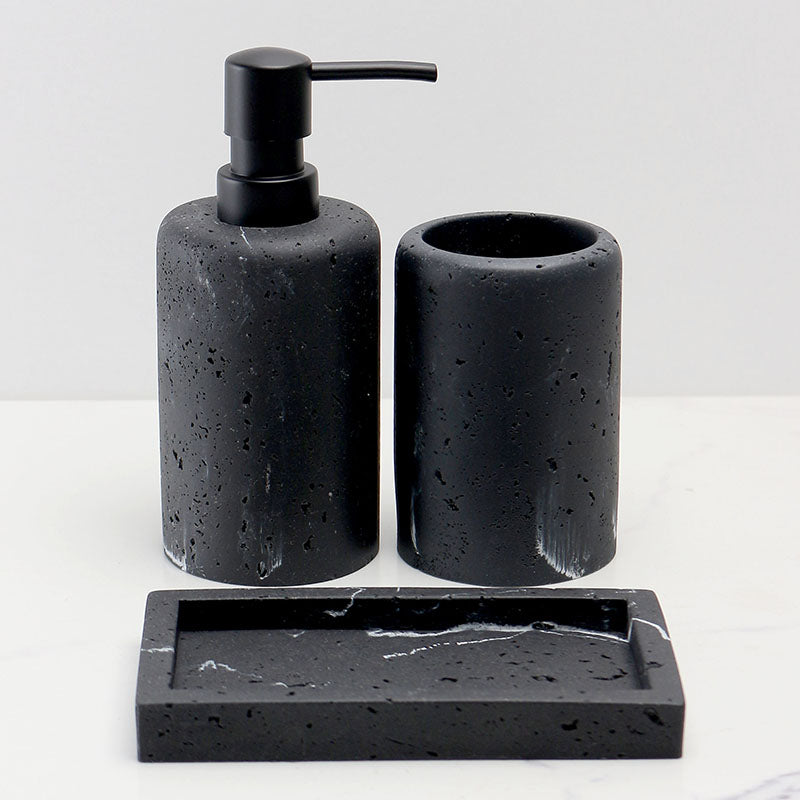 Adaugă o notă sofisticată spațiului tău cu acest set de baie negru din rășină premium. Designul minimalist și culoarea intensă oferă un aspect contemporan, perfect pentru băile moderne sau spațiile hoteliere.