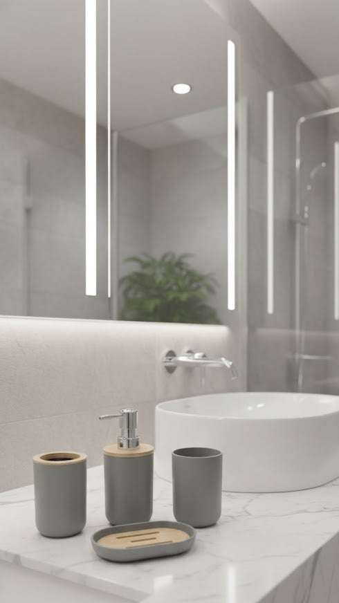 Adaugă un plus de rafinament băii tale cu acest set complet de accesorii, conceput pentru a oferi un aspect elegant...