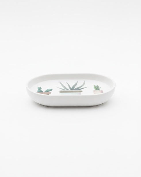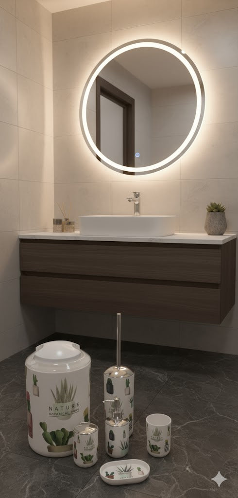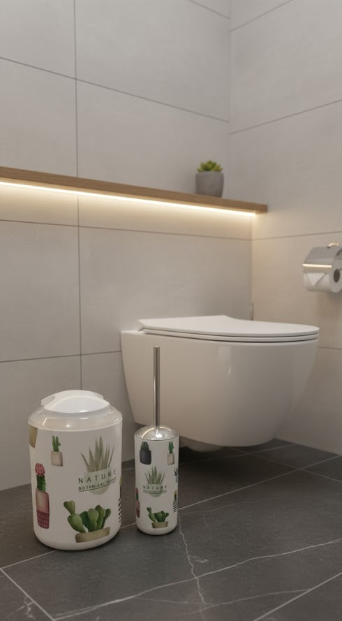 Set accesorii baie alb "Nature Botanical Mood", SANITARY – 6 piese, cu design cactus