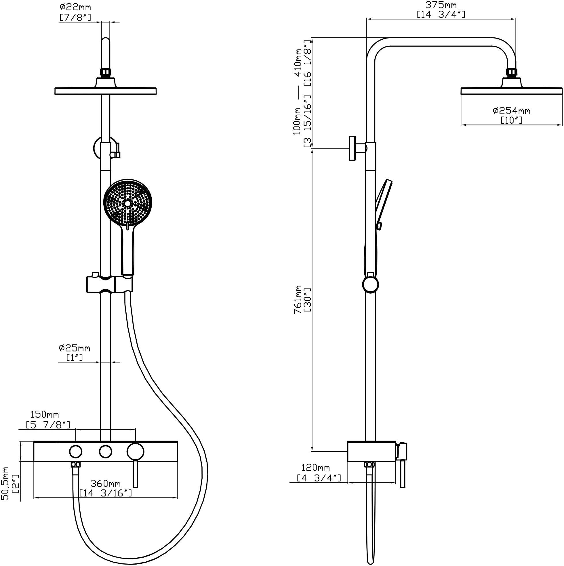 2 funcții de duș – cap fix pătrat + duș de mână rotund, comutabile ușor.