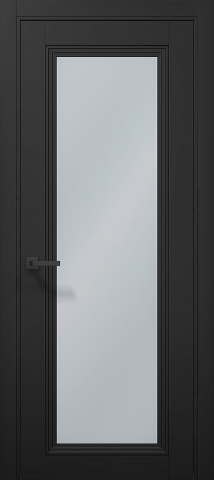 Ușa T13 este pentru cei care vor un interior rafinat, cu personalitate. Rama cu profil frezat aduce un aer clasic, în timp ce finisajul negru mat și geamul sablat o aduc în prezent – un mix perfect între intimitate și deschidere vizuală.