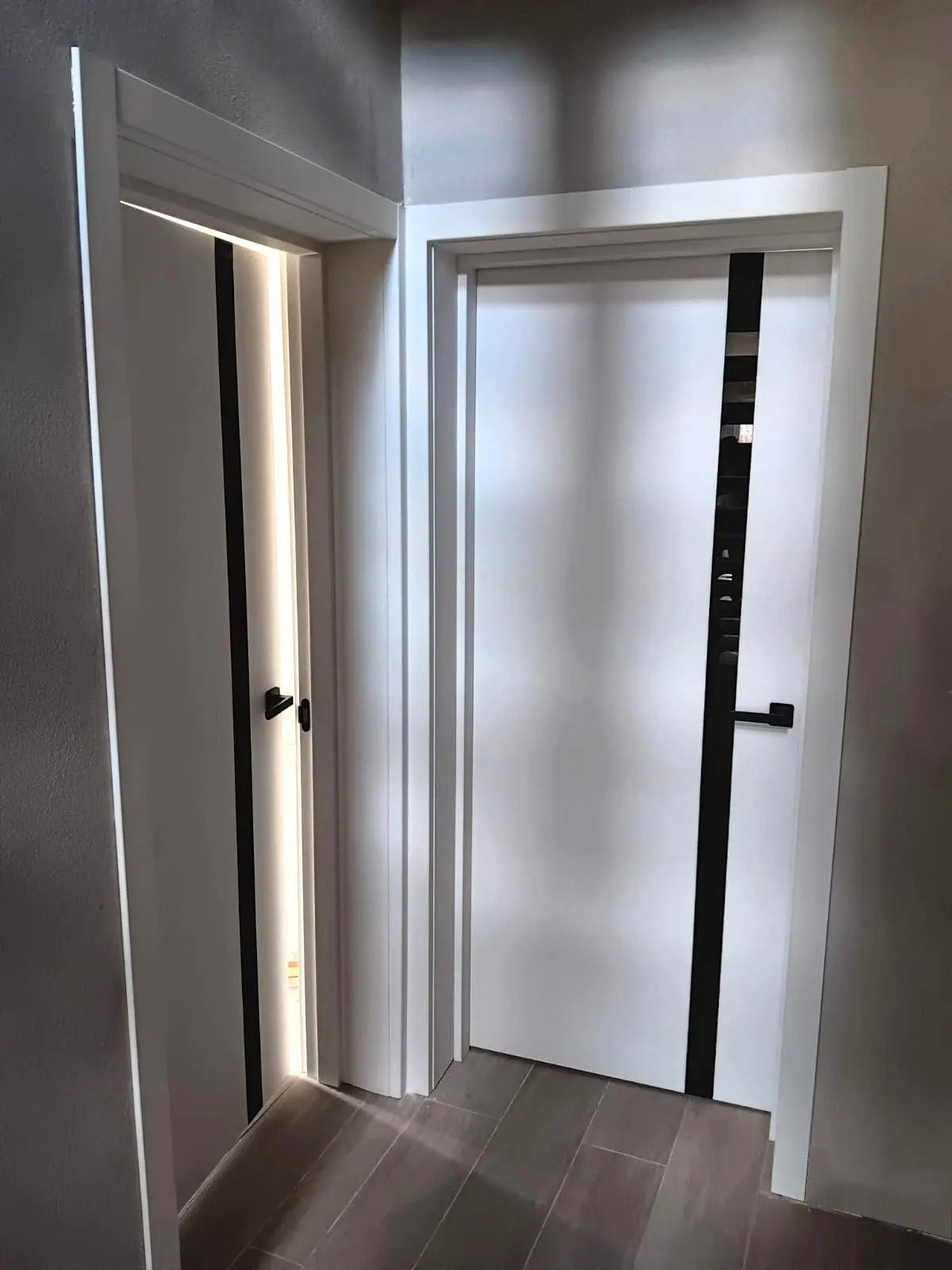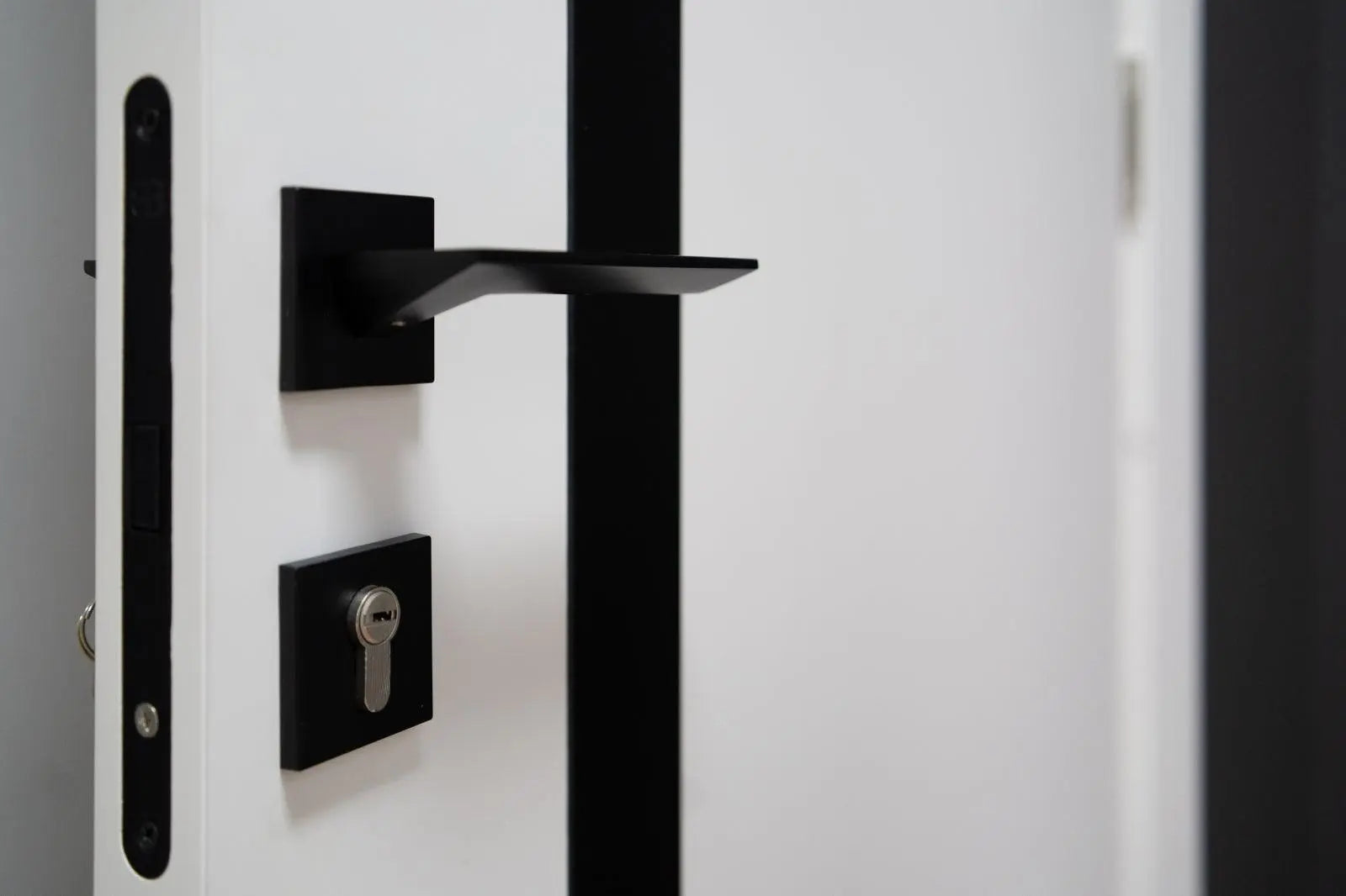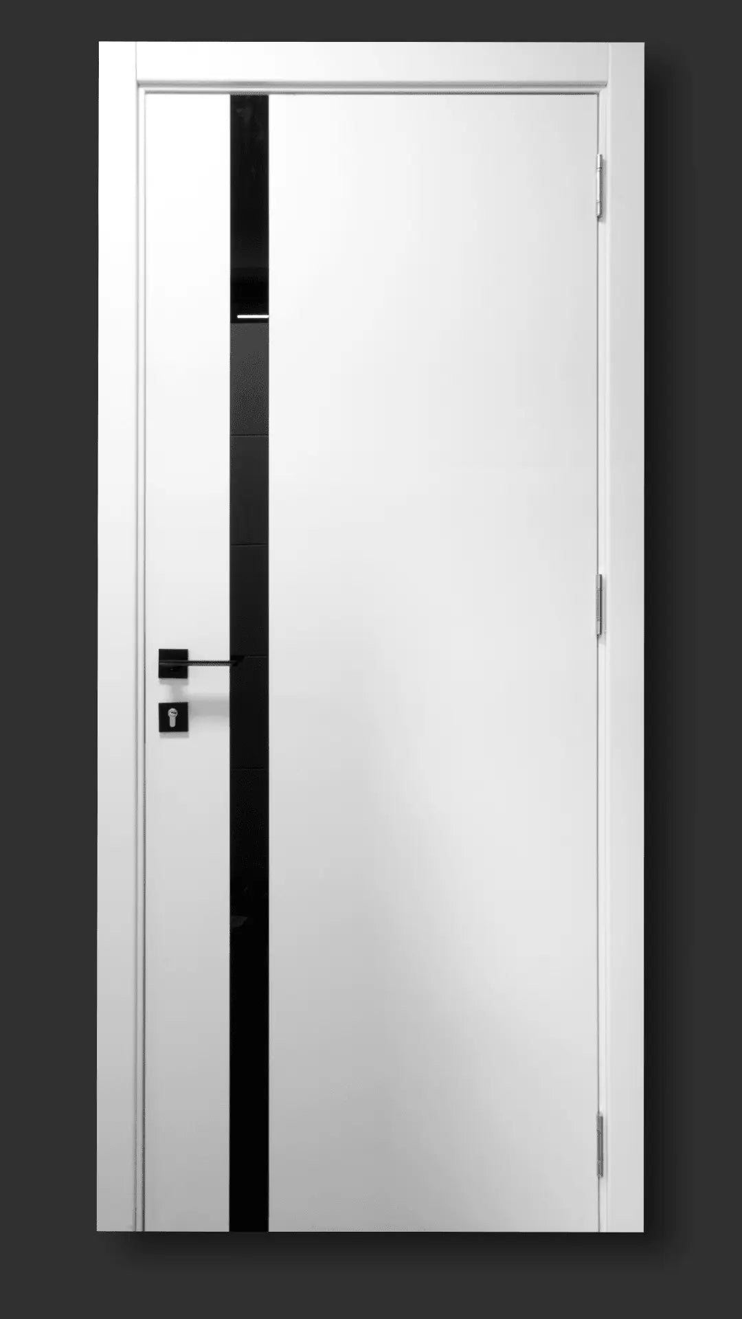 Ușă de interior City White Silk Mat – cu sticlă neagră aplicată și toc reglabil ✔️ Contrast elegant – alb...