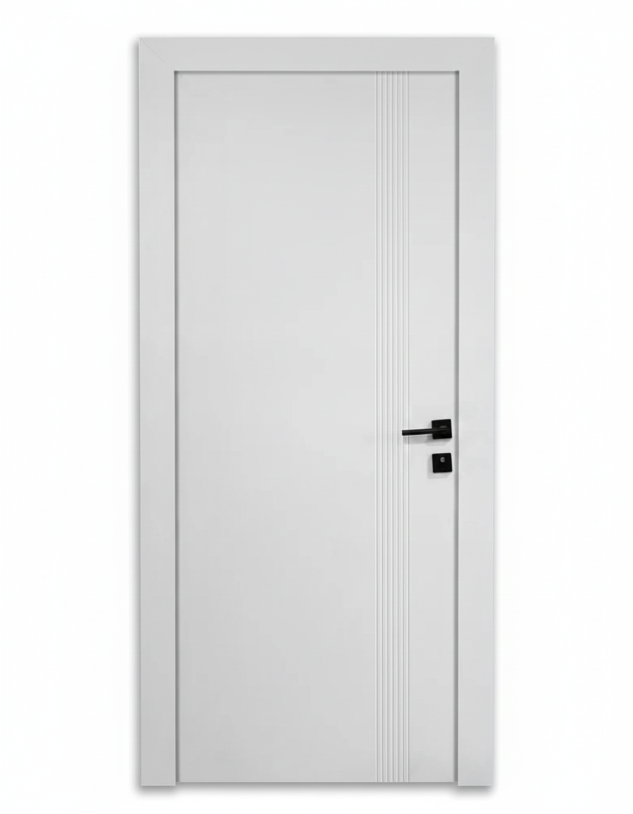 Suprafața ușii este acoperită cu PVC alb mat, rezistent la șocuri, zgârieturi și ușor de întreținut. Textura fină menține aspectul impecabil în timp, fără îngălbenire.