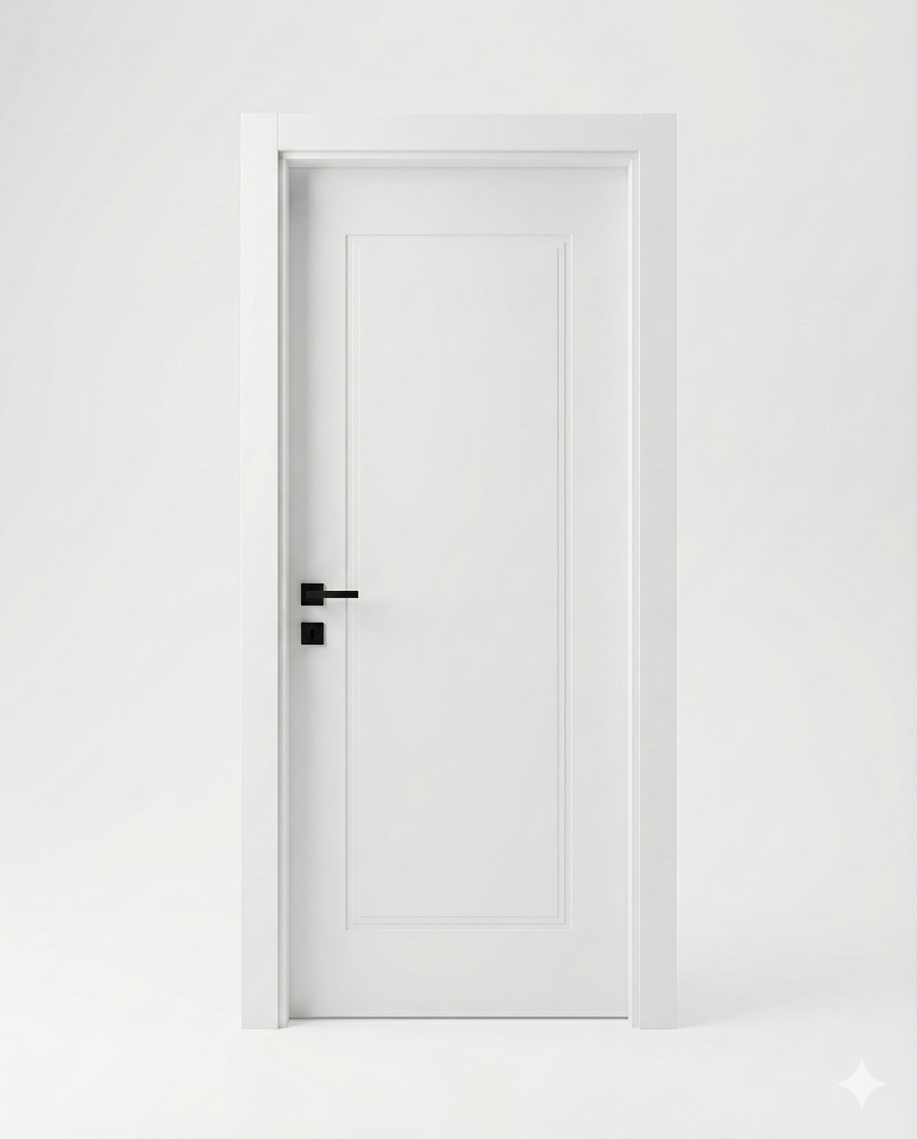 Ușă de interior albă JY-004 cu toc reglabil – design modern mat, complet echipată, livrare rapidă