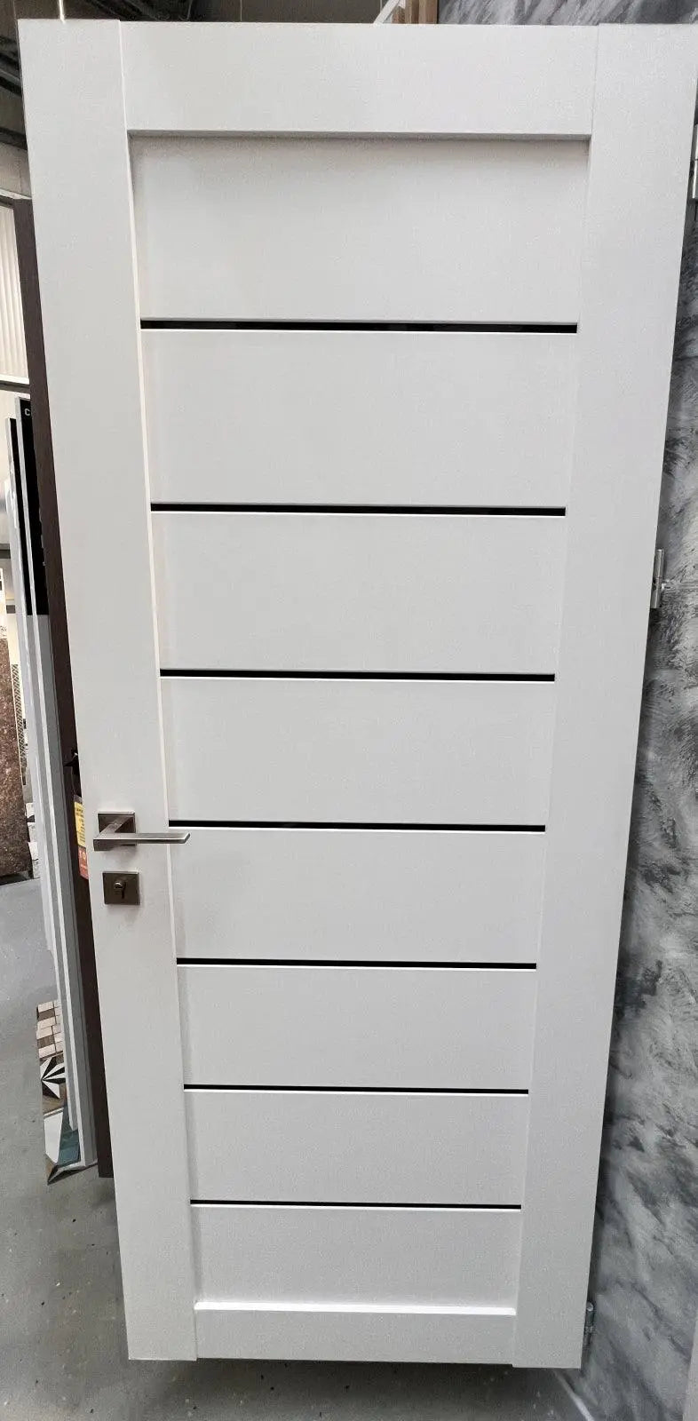 Ușă de interior Deco 10 White Silk Mat – complet echipată, cu toc reglabil ✔️ Alb mătăsos, cu decor vertical...