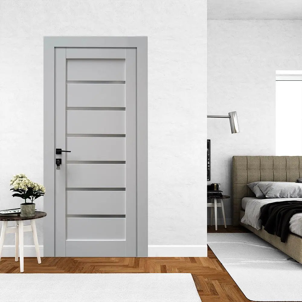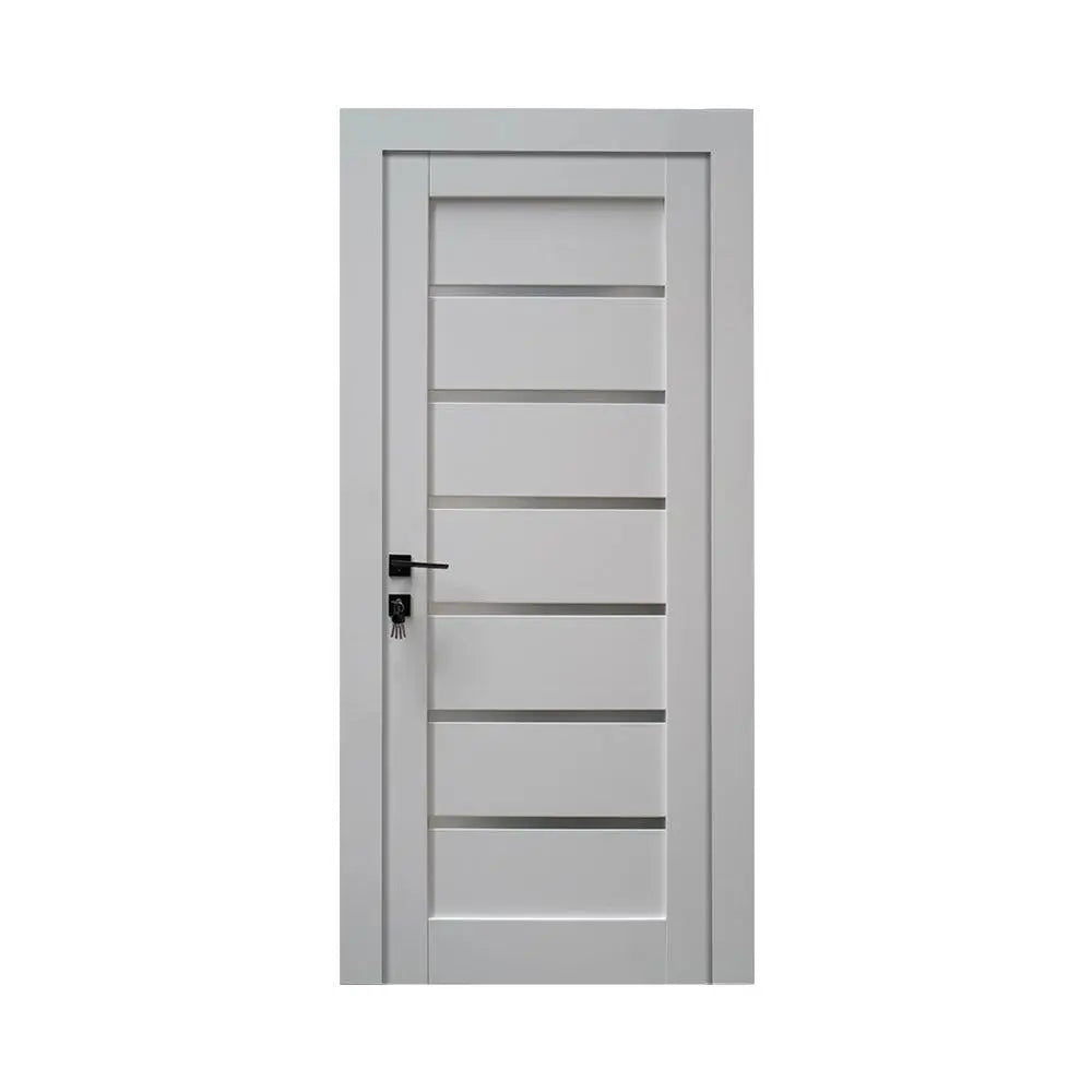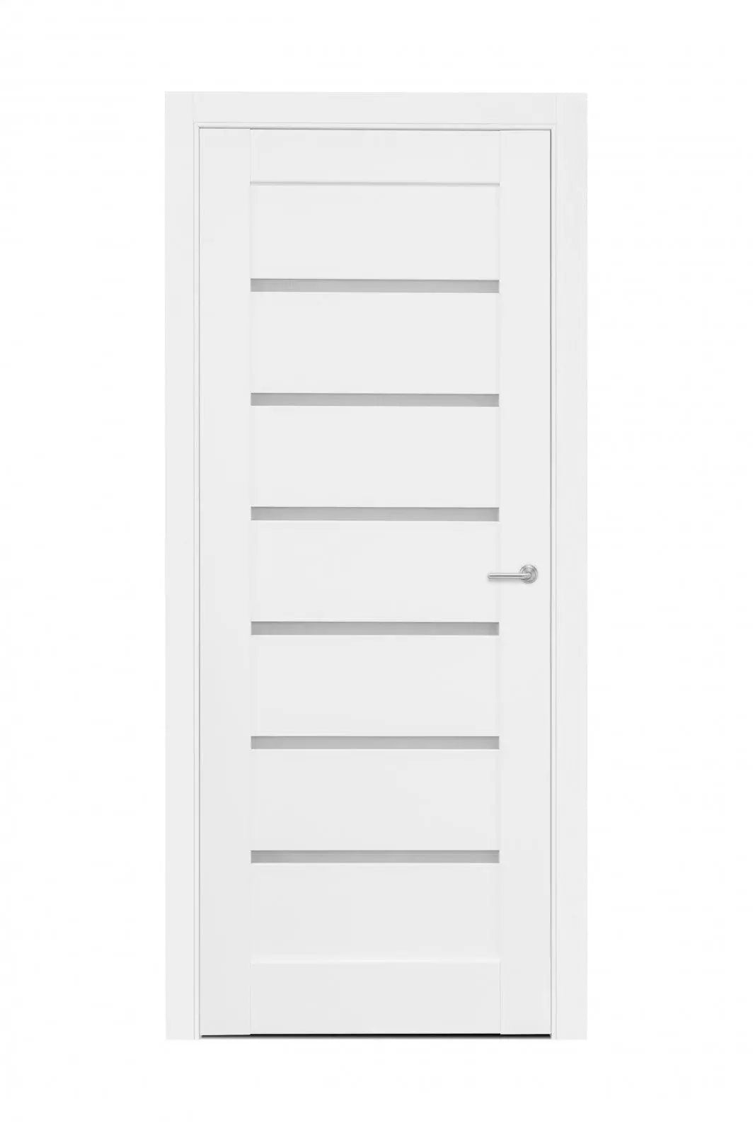 Ușă interior Mira alba cu sticla mata-model modern cu toc reglabil, complet echipată