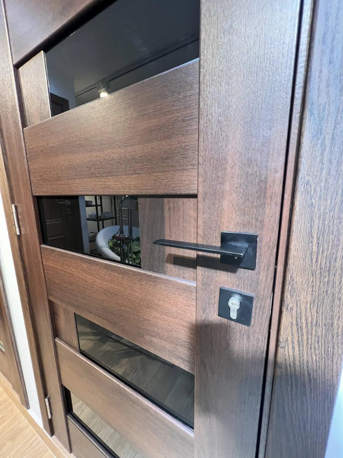 Ușă de interior Rino 16 European Chestnut – complet echipată, cu toc reglabil și sticlă decorativă ✔️ Eleganță și căldură...