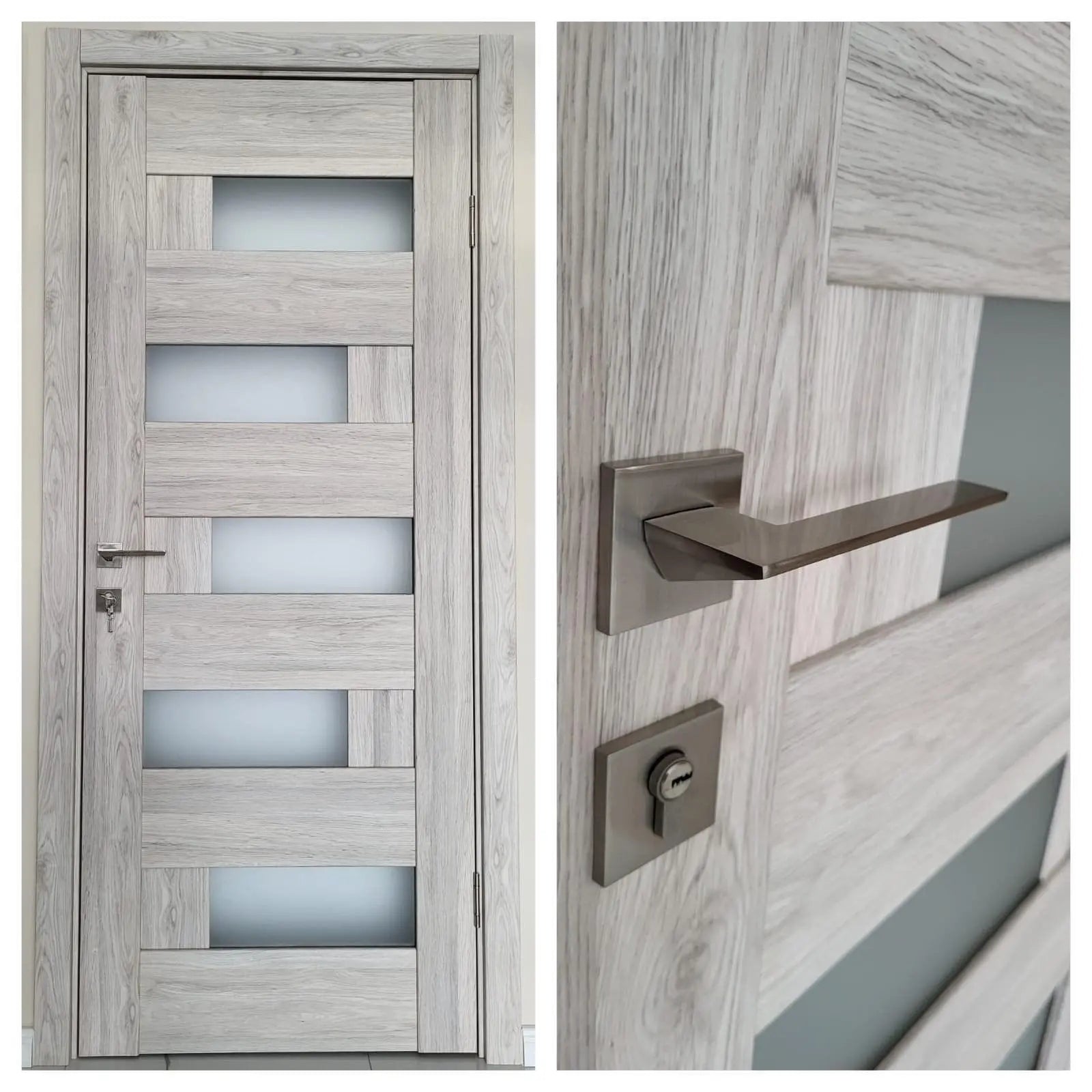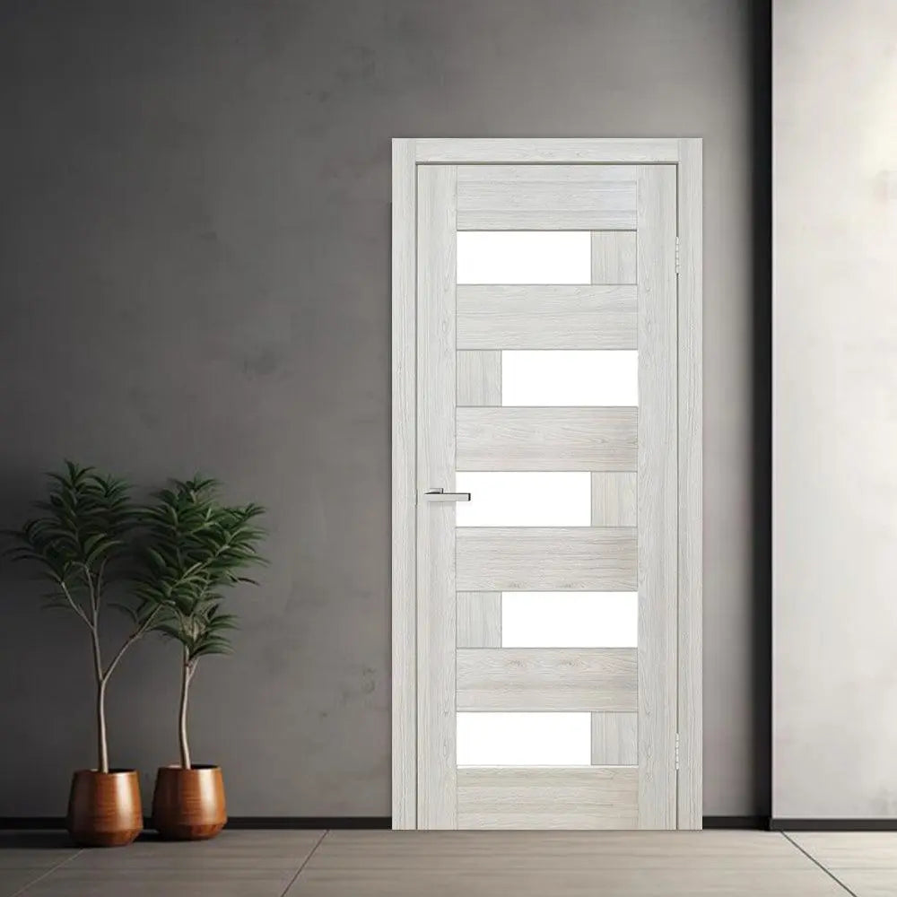 Ușă de interior Rino 16 Shalet Oak – complet echipată, cu toc reglabil ✔️ Design cu sticlă verticală și decor...